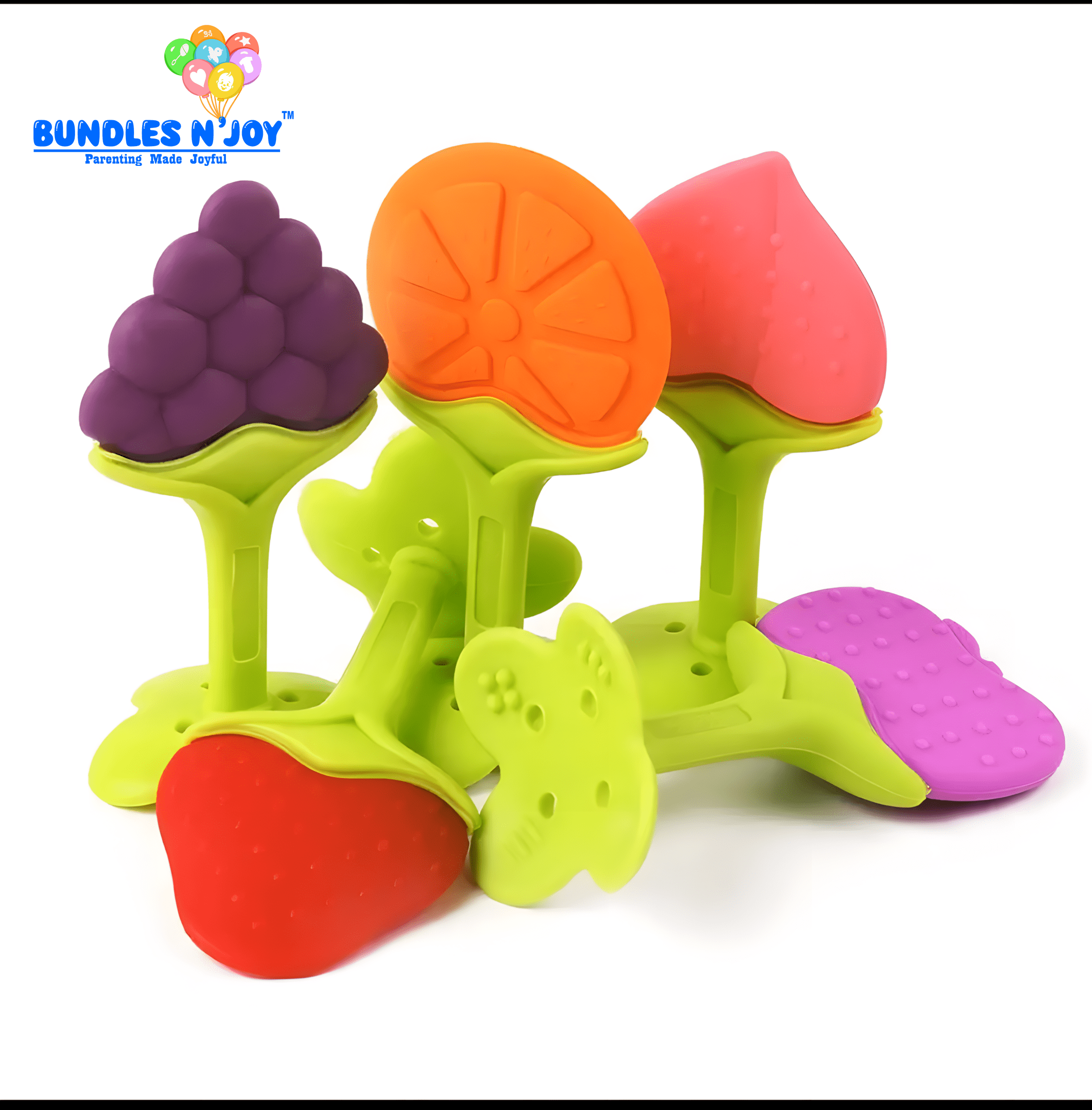 Each teether is carefully designed to massage gums, relieve discomfort, and stimulate sensory development while being easy to grip with tiny hands. The lightweight and textured surface helps improve motor skills and keeps babies engaged while chewing.